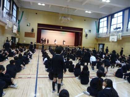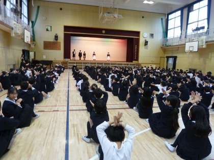 この後、中本小学校クイズでみんな楽しんで、最後に校歌を歌って中本小学校の創立137年をお祝いしました。