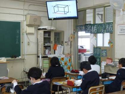 4年生の算数です。直方体と立方体の2つの立体について学習をしているところです。