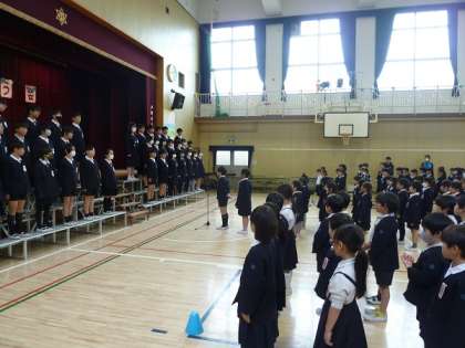 最初は1年生。みんな一生懸命にお礼の言葉を言い、歌を歌いました。
