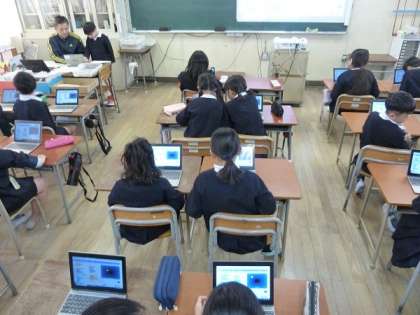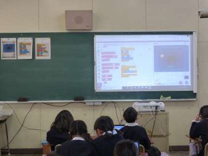 子どもたちは打ち込みを終了した後、自分たちがプログラミングしたものがどういうように表されるのか興味津々で取り組んでいます。