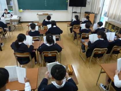 どの子も先生の読みに合わせて教科書をしっかりと見て漢字の読み方や話の内容を理解しようとしていました。