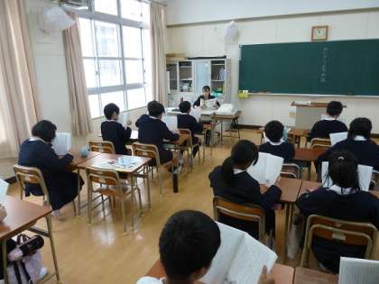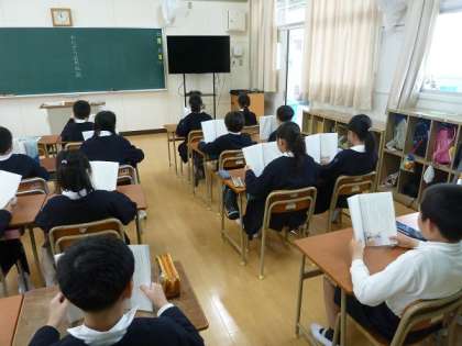 子どもたちは先生が読んでいる箇所をしっかりと目で追い、静かに聞いていました。