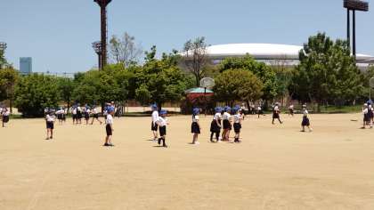 ヤンマースタジアムの後は、広場で子どもたちは思いっきり遊んでいます。