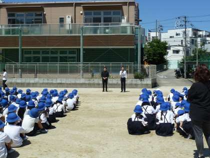 今日は、学校に不審者が入って来た時の想定で避難訓練をしました。