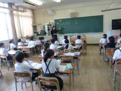 今日の3年生の算数の学習では、一つの問題文の中に3つの数が入っているので、順に計算していけば答えは求められるのですが、数字が出てきた順に計算していく以外で工夫ができないかということを考えていました。