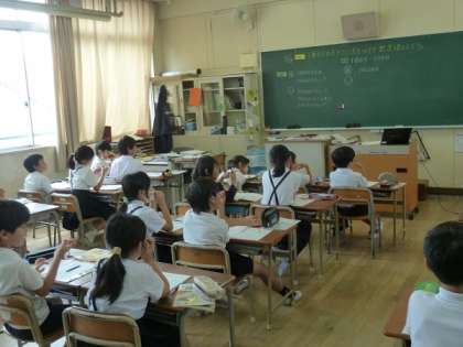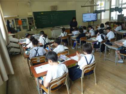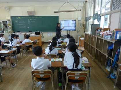 数字が書いてある2つの目盛りの間の数を確認し、1目盛りの大きさがいくらになるのかを考えて目盛りを正しく読む練習をしていました。