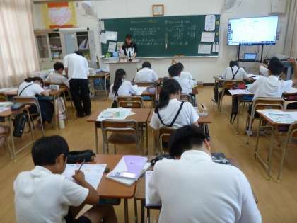 計算ができた人は手をあげ、先生がノートを確かめて丸をつけてまわっていました。