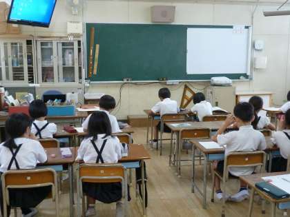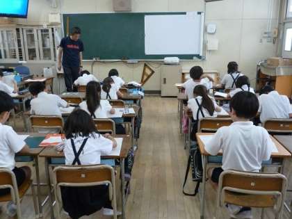 自分で覚えている漢字は何も見ないで書き出し、分からないものはドリルを見て正しい形を確認して書いていました。先生が子どもたちの書いている文字を見て回り、気になる文字は訂正していました。