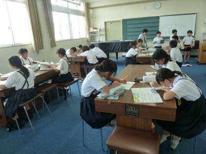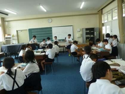 楽譜の上のパートと下のパートの2つに分かれてお互いの声を聴きあいながら音程に気を付けて歌うことや間奏ではノリノリで身体表現を工夫することなどグループで練習していました。