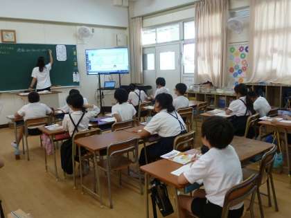 三角形の角の和は180度になるということを使って、角の大きさを求める問題に取り組んでいました。