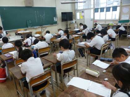 3年生は漢字ドリルを使って、1学期に学習した漢字の練習をしていました。