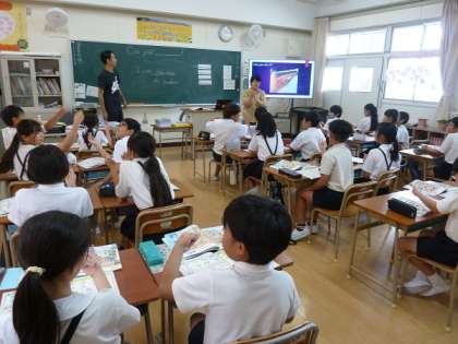 5年生の外国語の学習で、今日はC-NETの先生との学習です。