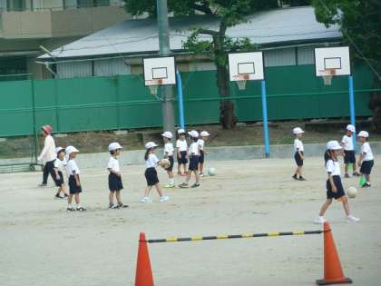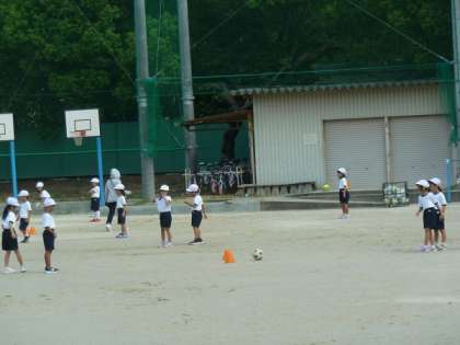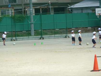 力加減やまっすぐにボールが転がるように気を付けて、ボールをけることができるよう行っていました。