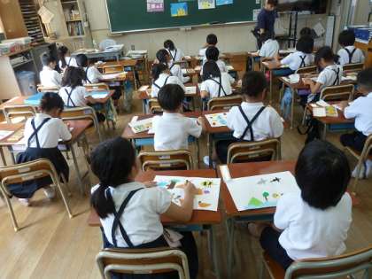 前回よりも画用紙に貼り合わせている数が増えてきて、作品の完成に向けて進んでいる様子です。