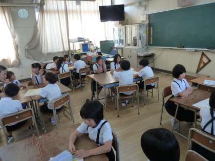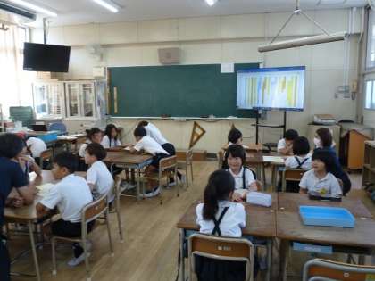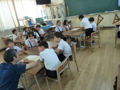 前の時間に学習した、話し方と聞き方の学習を活かして、この時間はそれぞれグループで話し合いの仕方の練習をしていました。