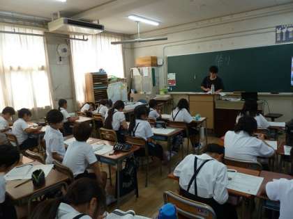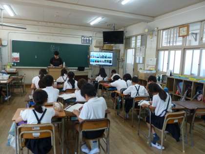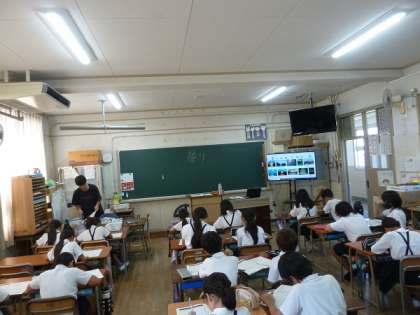 この時間は、祭りとはどのようなものかということで、神嘗祭について書かれた文章を読み、どんな祭りかをまとめていました。他に自分が知っている祭りにはどんな祭りがあるか、プリントに記入していくようでした。