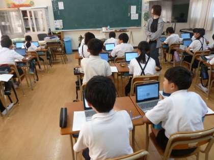 ヒトは母親の胎内で、どのように育って誕生するのかということをテーマに、各自がパソコンを使って、調べていました。栄養や体の大きさの変化などそれぞれが調べたことを自分のノートにまとめていました。