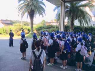 お見送りの志摩ビーチホテルのみなさんにバスの窓から手を振って、2日目の活動場所、鳥羽水族館に向けて出発です。