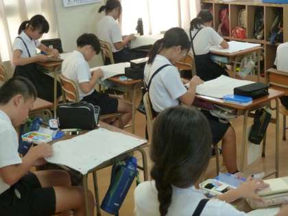 この時間はミシンで縫う前に、針と糸で仮縫いをしておく作業をしていました。