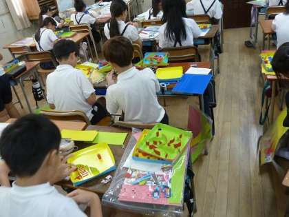 工作でビー玉を転がせていく立体作品の製作にとりかかっているところです。