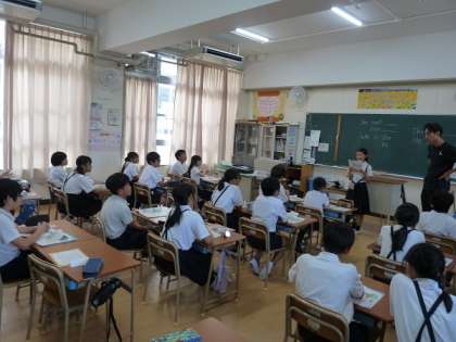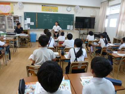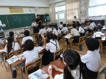 こんなことができる、 これはできない というのを2つか3つ紹介し、それが誰かをあてます。もちろんこのやりとりは英語で行うということで、楽しみながら英語の力をつける取り組みでした。