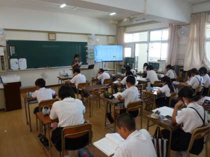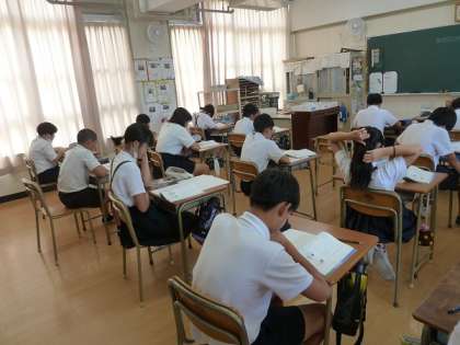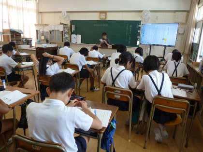「模型のまち」というお話を先生が読むのを子どもたちは文章に目を落として聞いています。先生が読むのを聞きながら漢字の読み方や言葉のまとまりなど確かめ、正しい読みを知ることが大事です。