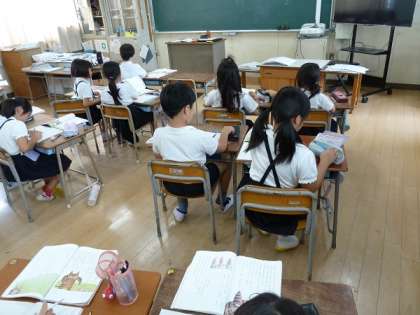 「にやーご」という物語に登場するねこのネズミに対する気持ちが変化した場面を見つけるのがこの時間のめあてでした。