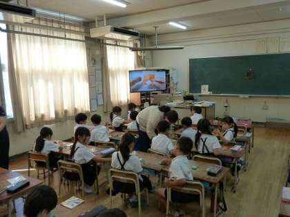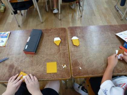 モニターで折り方についての説明を見ながら同じようにやっていきます。