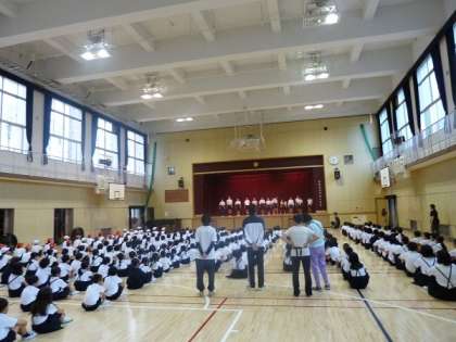 今日の児童集会は、前期計画委員と後期計画委員との交代を行いました。