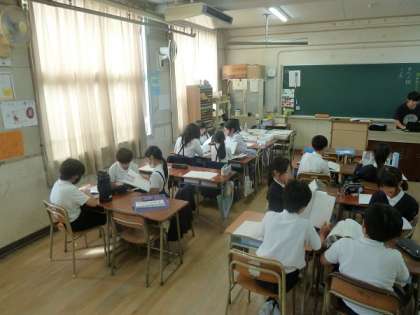 「ごんぎつね」の学習で、まずは班の人たちと音読で一文交代読みをしていました。