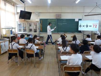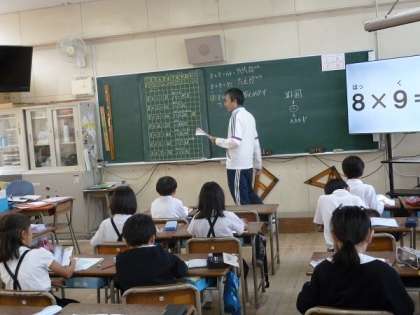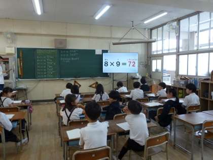 「はちいちが8」「はちに16」・・・「はっく しちじゅうに」というように、唱え方を一緒に確認していました。