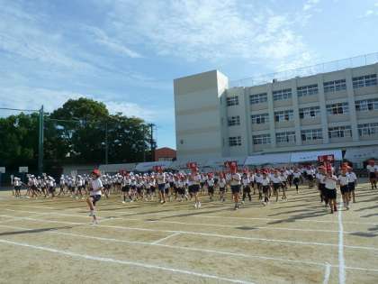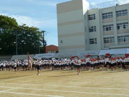 今日の全体練習は、開会式、閉会式の入退場の練習をしました。