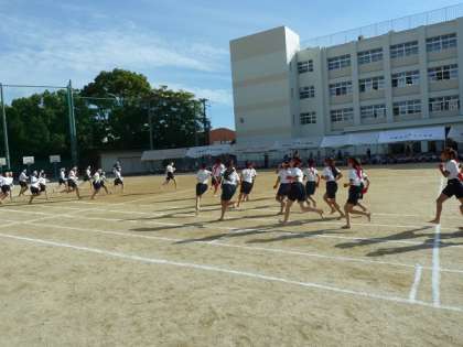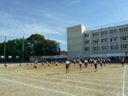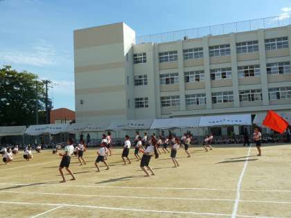 応援団の人が先頭にたって、紅組、白組の健闘を誓いあいます。