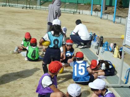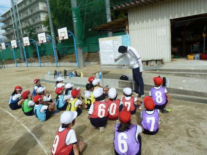 子どもたちは、ゲームの中でどのようにすると段ボールの的を当てて落とすことができるか、グループで作戦を考えて取り組んでいました。