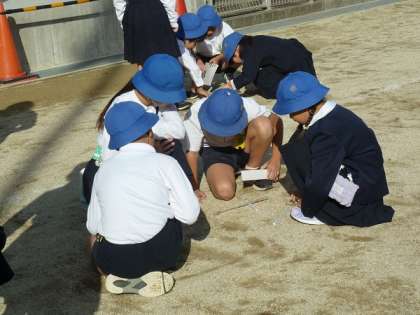 日なたと日かげでの地面の温度に違いがあるのか調べています。