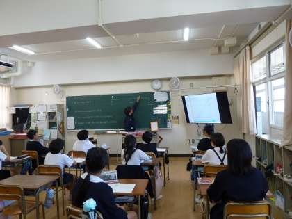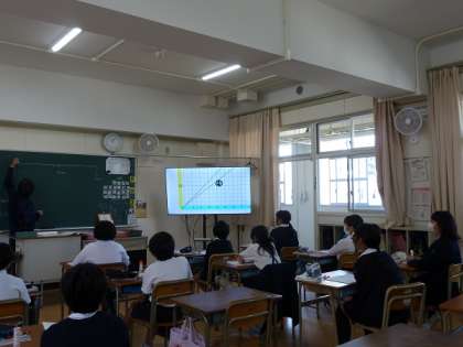 2人の歩いた時間と距離を表したグラフを見て、そこからわかることを読み取る学習をしていました。