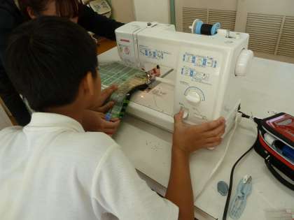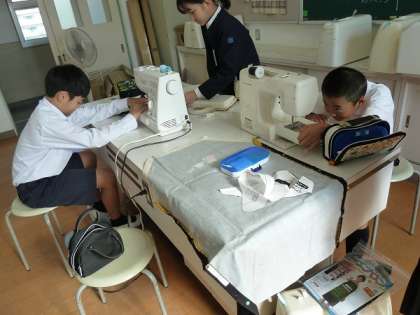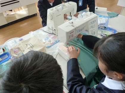 ミシンを扱うというのが、日常の生活の中でほぼないと思うので、子どもたちにとっては、ミシンの操作を確認しながらの作業になります。ミシンを使うと速く縫うことができて、縫い目が細かくそろっているのできれいに縫えることを実感することができたんではないかと思います。