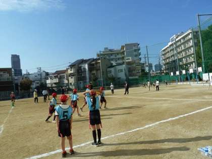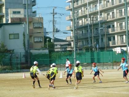 ボールをもった人ができるだけ前に進み、つかまりそうなところでうまくボールを渡してトライができたとき、子どもたちはすごくいい表情をしていました。