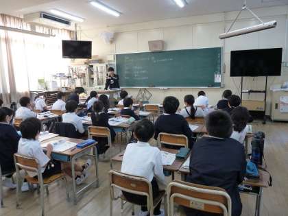 消防署についての学習をしています。消防署では「消火隊」「救急隊」「救助隊」の3つの役割に分かれていて、なぜ3つに分かれているのかな?ということを考え、発表していました。
