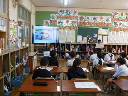 1年生が自分が調べたことをまとめ発表しているところです。