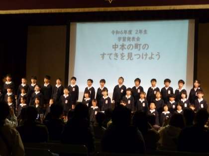 2年生は学習発表「中本の町のすてきを見つけよう」を行いました。
