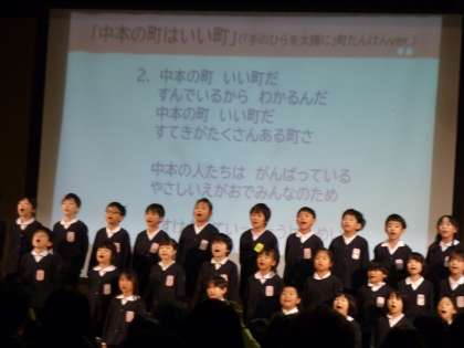それぞれ見学したところの「すてき」なところを見つけ、中本の町にはすてきがたくさんあるという内容で、それを歌詞にして「中本の町はいい町」の歌を披露し、「すてき」があふれる発表でした。