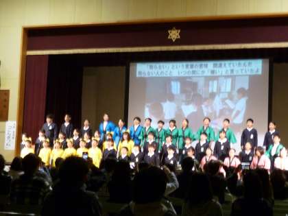 教科書に出てくるごんぎつねのお話を分担しての音読と、ごんと兵十の様子を演じることで、お話の内容を分かりやすく視覚化していました。