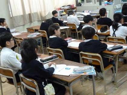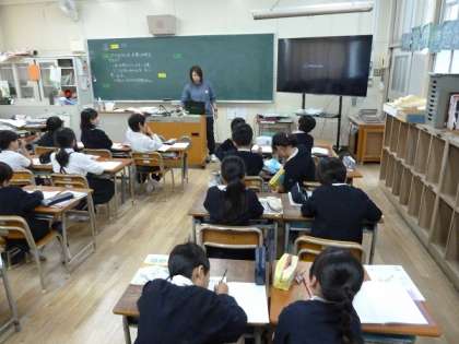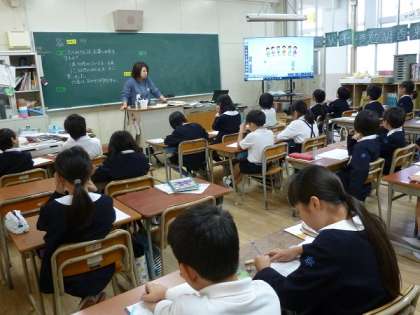 問題場面を図で表したものを見て、ジュースとみかんの合計を別々に計算してたす考え方とジュースとみかんを一つのセットとしてそのセットがいくつ分という考えがあることから、このまとまりとして考えた計算を式に表すとどうなるかを学習していました。