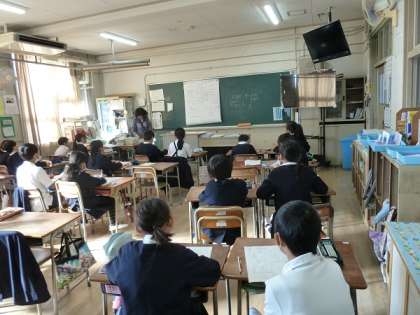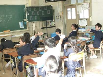 プリントの問題を解いた後、答え合わせをしながら先生がポイントを解説して進めていました。
