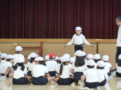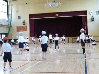 みんな集まってまずは、先生から跳び方についてのポイントを聞き、その後、広がって各自個人練習です。