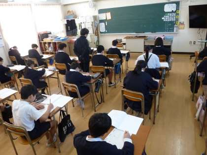 問題に集中して取り組んで、解答用紙に書き込んでいました。