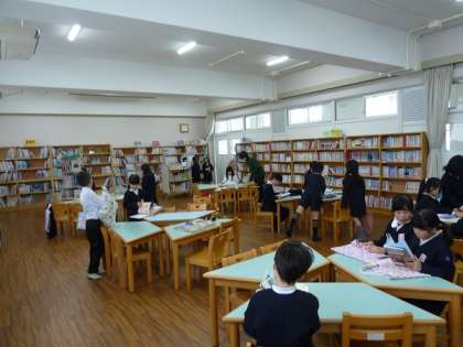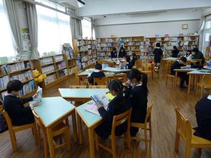 子どもたちはまずお家や教室で読むための本を選んで借りる手続きをした後、図書室で読む本を選んで自分の席で読んでいます。