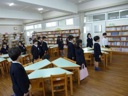 チャイムが鳴って教室に戻る前に子どもたちは読み聞かせをしてもらった先生にあいさつをして教室に戻っていきました。