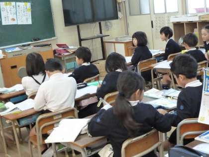 子どもたちと先生でやりとりをしながら答えを確認していき、間違えていた人はやり直しを済ませて終わりました。